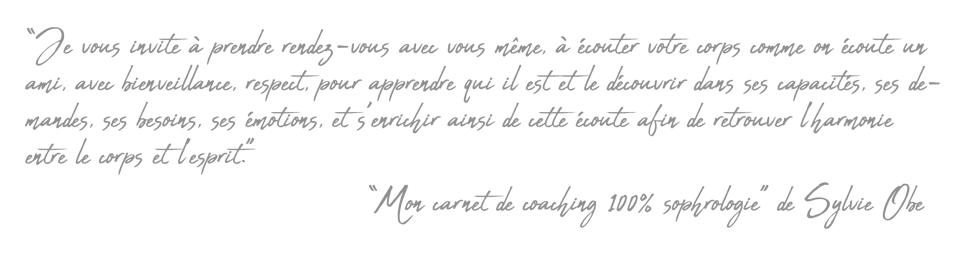 La sophrologie est une méthode psychocorporelle qui se réalise à travers l'écoute de ses ressentis physiques, mentaux ou émotionnels. L'objectif est de développer la conscience et de retrouver ce bien-être quotidien qui permet de développer son potentiel et aller de l'avant. La sophrologie nécessite un travail régulier pour que vous puissiez en ressentir les bienfaits.